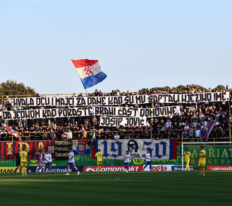 Torcida je potom odala počast Josipu Joviću, prvoj hrvatskoj vojnoj žrtvi u Domovinskom ratu, koji je ubijen na Plitvicama na "Krvavi Uskrs". Navijači Hajduka u poruci su napisali: "Hvala ocu i majci za dane kad su mu šaptali njezino ime da jednom kad poraste brani čast Domovine. Josip Jović".