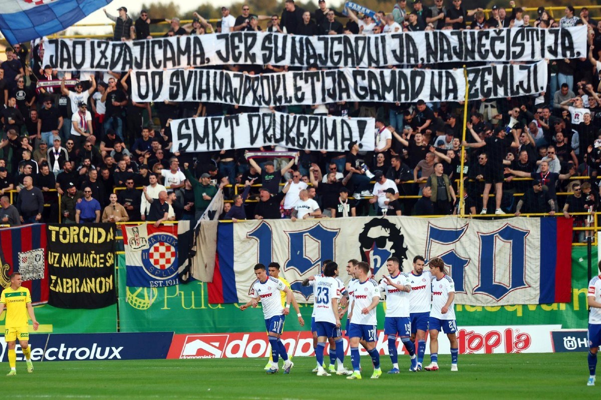 Na posljednjem podignutom transparentu pisalo je: "Jao izdajicama, jer su najgadnija, najnečistija, od svih najprokletija gamad na zemlji. Smrt drukerima!". Uz to su zapjevali pjesmu Marka Perkovića Thompsona "Neću izdat ja Boga nikada".