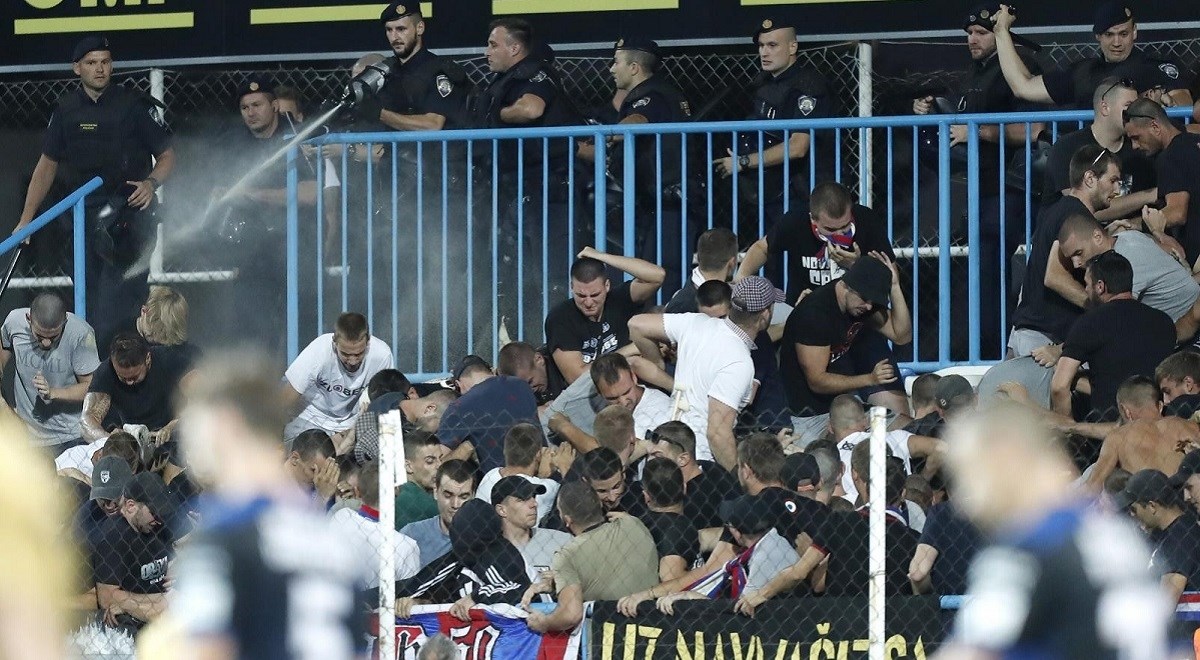 Vrlo brzo nakon toga na tribinu je ušla policija, a onda su porasle i tenzije, pa je došlo do sukoba policije i Torcide. Navijači splitskog kluba trgali su stolice i divljali, a policija je nekoliko puta morala intervenirati i bacanjem suzavca.