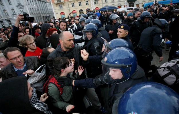 Policija je u startu postavila kordon između dvije skupine i spriječila eventualni sukob, pa je sve ostalo na međusobnom dobacivanju. Uslijedila su i prva uhićenja. Jedan mladić iz redova desničara digao je ruku i pozdravio nacističkim pozdravom, nakon čega je uhićen.