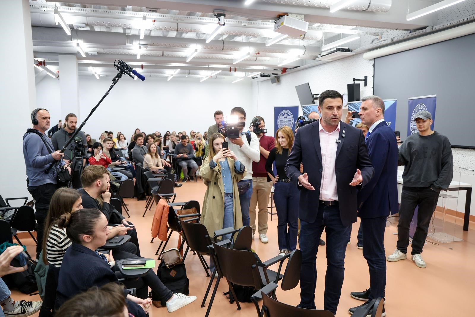 "Pozvan je gospodin Bernardić prije više od mjesec i pol dana, jedini koji se odazvao tom formatu. Promijenili smo format pa smo po podacima anketa, prvih četvero kandidata pozvali. Na taj format je jedino pristao Tomašević, a Bernardić nije bio pozvan jer je po tim anketama bio tek sedmi. On se danas pojavio i uvjeravao i mene i sve studente, koji nisu najbolje reagirali na njegove izjave, da njemu sučeljavanje otkazano nije. Međutim, mediji su ovdje, to je bila javna informacija", ističe.