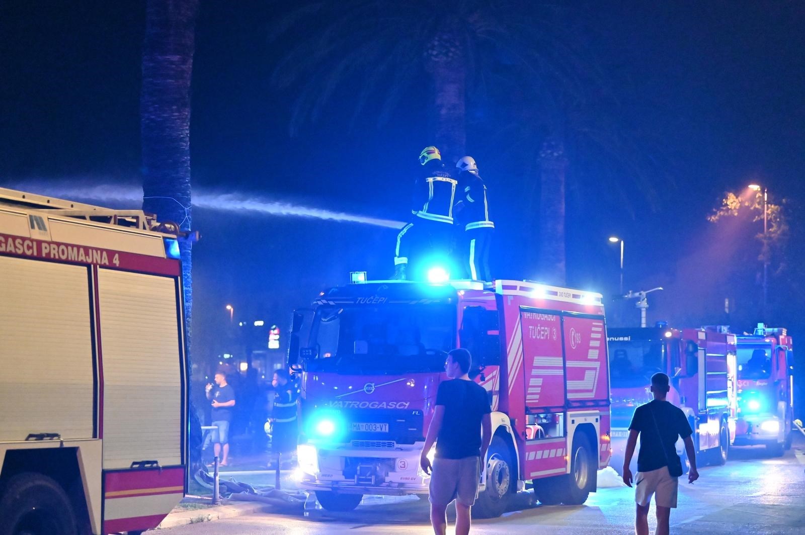 "Zbog gašenja požara riva je zatvorena za promet i obavlja se preusmjeravanje. Kada se za to stvore uvjeti obaviti će se očevid", objavila je PU splitsko-dalmatinska.