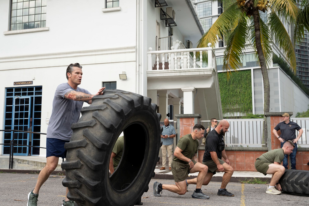"Ako ministar obrane može redovito obavljati tešku fizičku obuku, može je imati i svaki pripadnik naših združenih snaga", napomenuo je. Pobunio se protiv "debelih vojnika" te "debelih generala i admirala u hodnicima Pentagona", tvrdeći da su fizički standardi za pripadnike američke vojske narušeni i da je vrijeme za podizanje ljestvice.