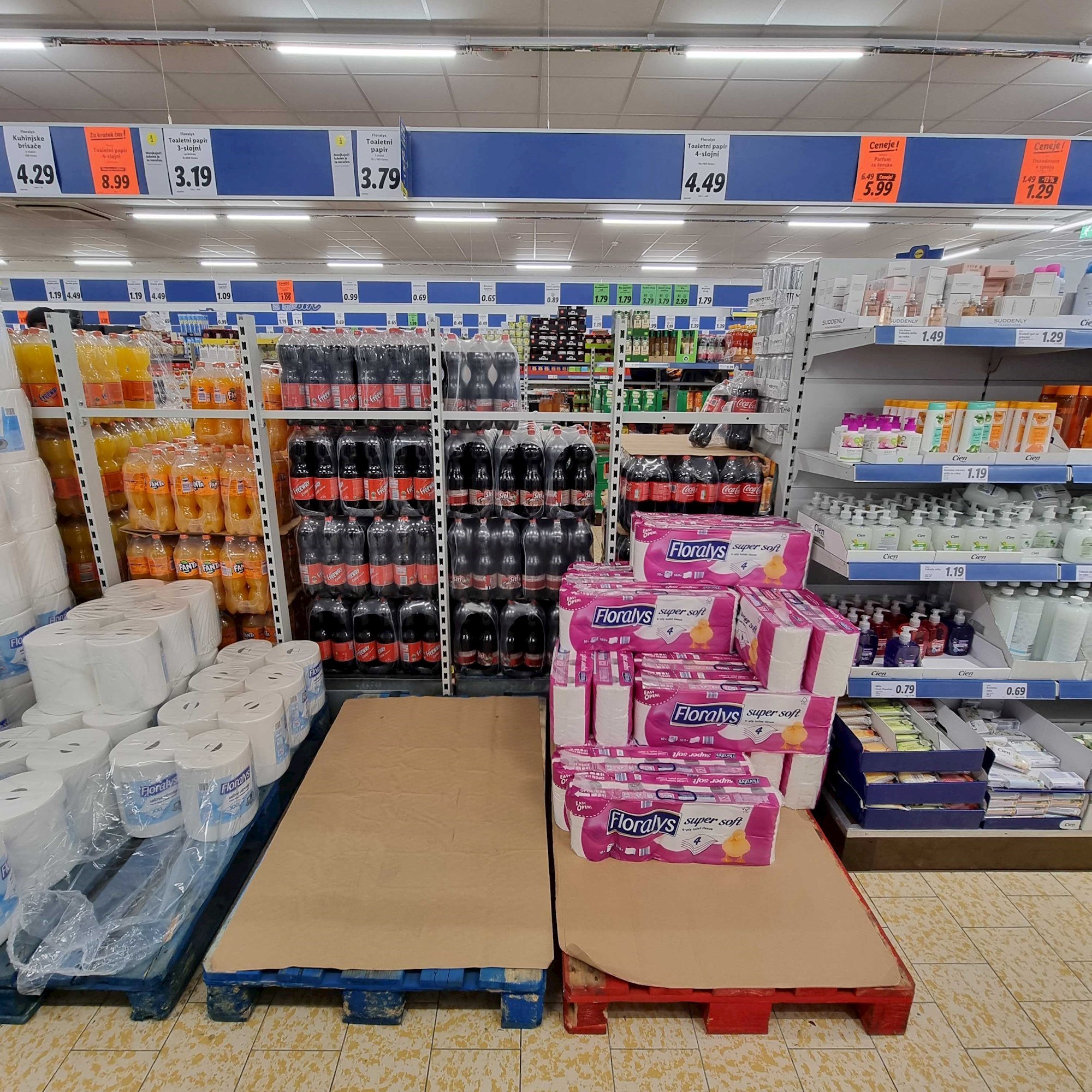 Police su pune hrvatskih proizvoda, kao i onih koji su nam dobro poznati iz velikih trgovačkih lanaca, tako da se hrvatski kupac ondje osjeća kao kod kuće. Cijena tih proizvoda je uglavnom ista kao i kod nas, ali i tu cijene variraju pa se nerijetko može naći hrvatski proizvod koji je nešto jeftiniji u susjednoj Sloveniji nego u Hrvatskoj.