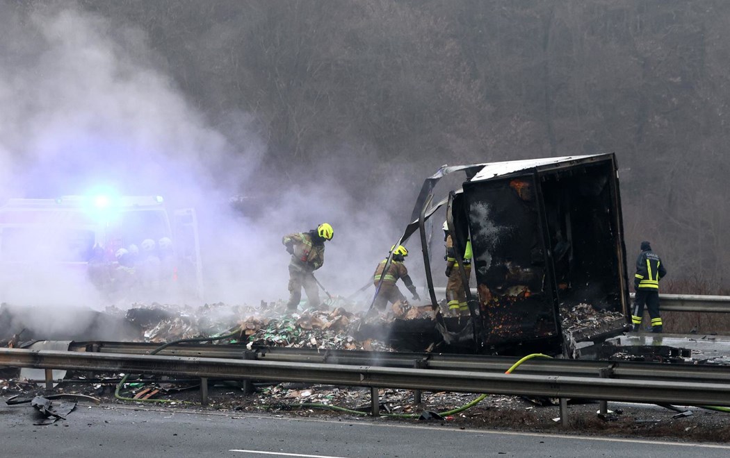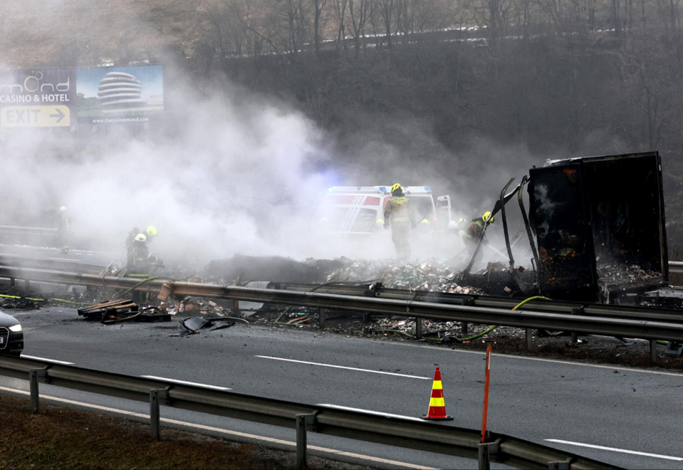FOTO Lančani sudar tri kamiona na autocesti u Sloveniji, izbila vatra