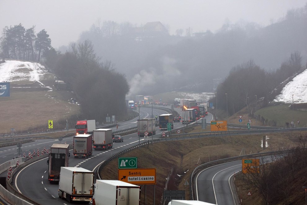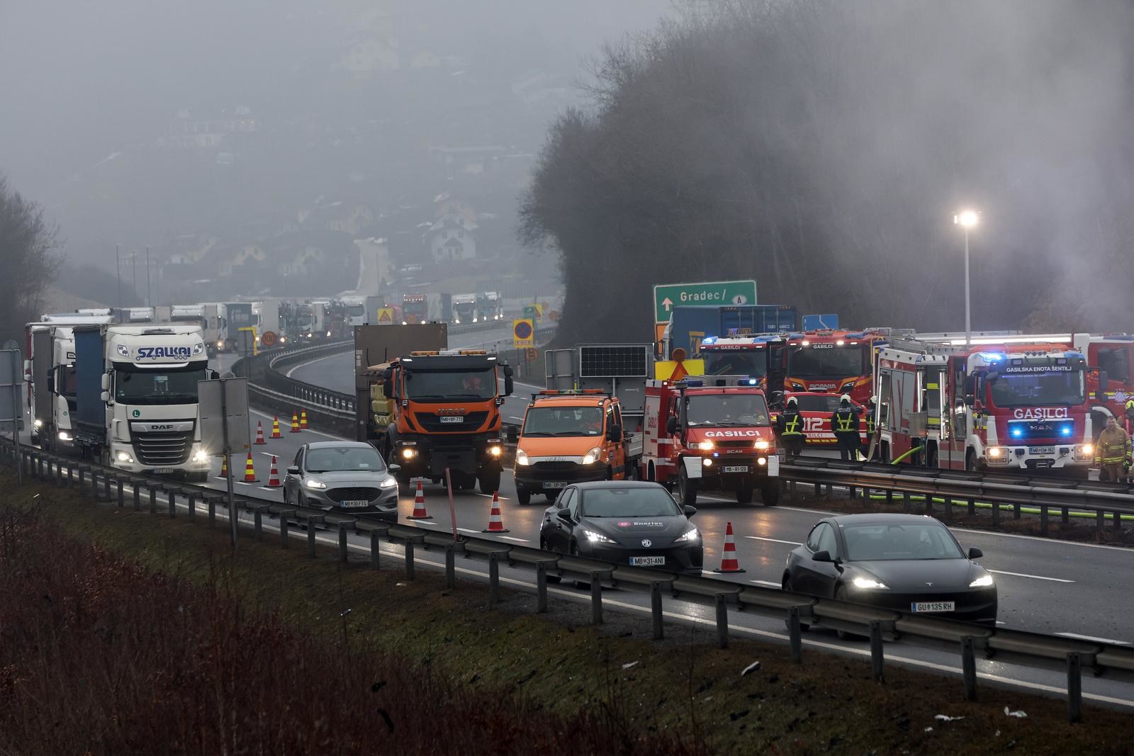 Štajerska autocesta između Pesnice i Šentilja prema Austriji i dalje je zatvorena zbog uklanjanja vozila s kolnika. U smjeru Maribora promet se odvija jednim trakom, a stvorila se duga kolona teretnih vozila.