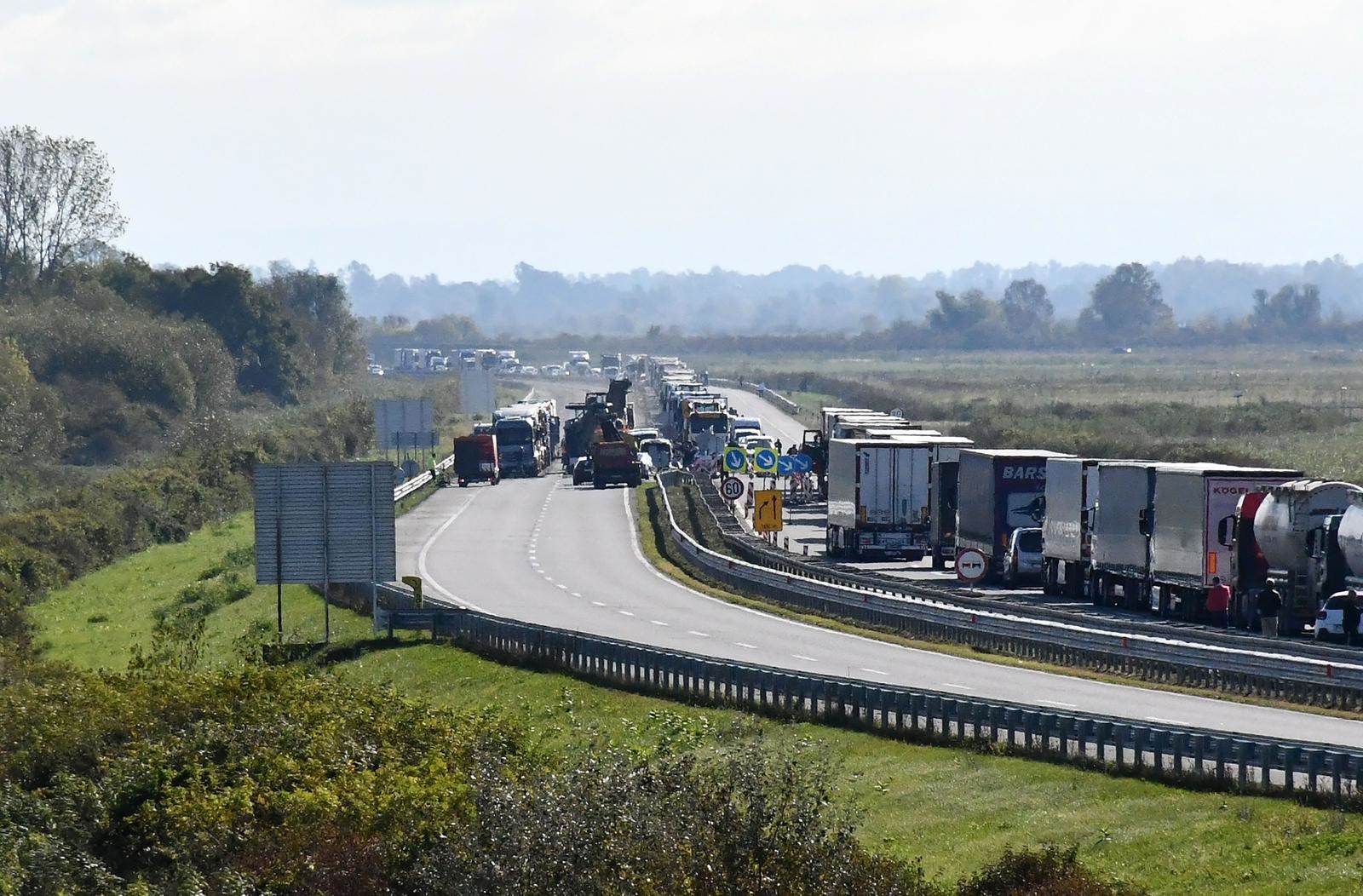 Promet autocestom u oba smjera bio je zatvoren do 8:25 sati, nakon čega je pušten usporeno jednim trakom, a promet iz smjera istoka prema zapadu bit će zatvoren do završetka očevida, navode u policiji. Dodali su da policijski službenici promet na čvoru zapad (Slavonski Brod) preusmjeravaju drugim alternativnim pravcima.