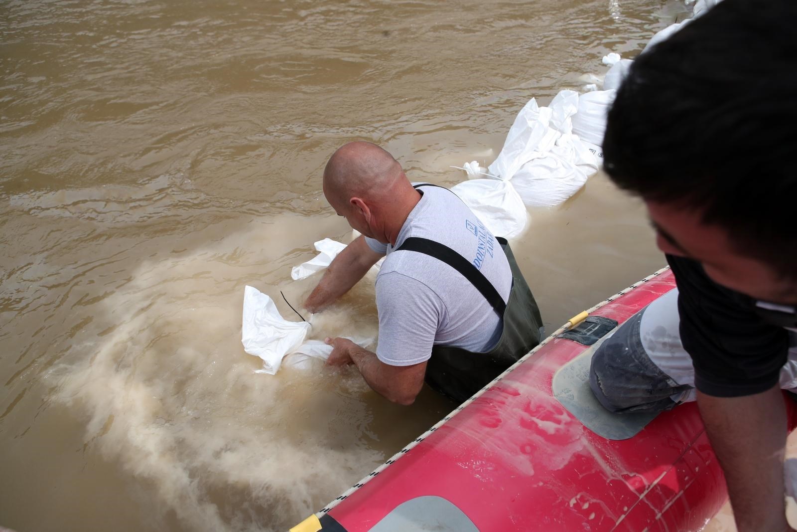 Na poplavljenom području Zadarske županije pripadnici Državne intervencijske postrojbe Civilne zaštite Rijeka i Split, Ravnateljstvo Civilne zaštite MUP-a i djelatnici Hrvatske vode cijelu su noć s mještanima i ostalim operativnim snagama punili vreće s pijeskom i povećavali zaštitni zid kako bi obranili uži dio Obrovca od nabujale Zrmanje.