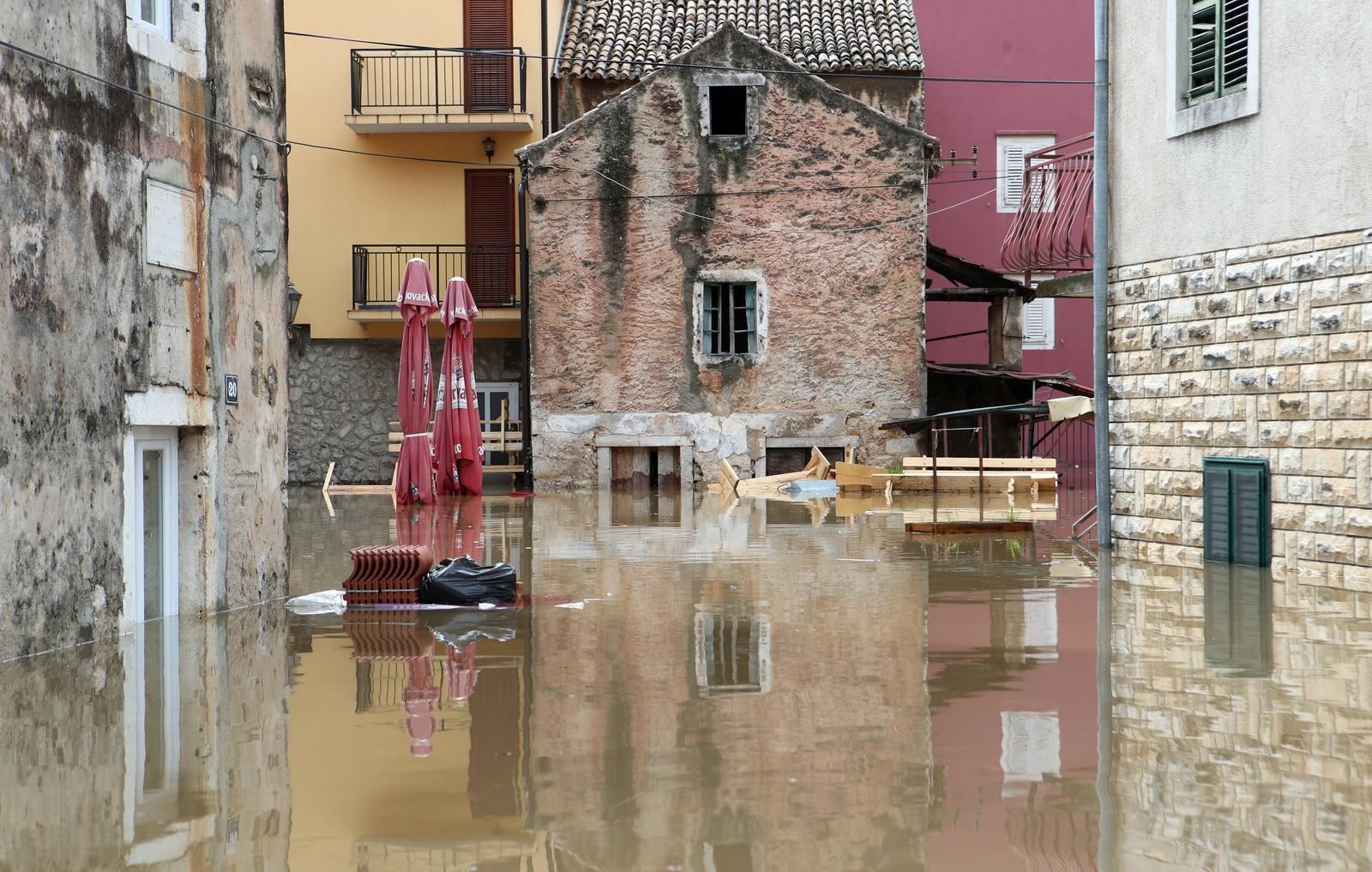 "U Obrovcu je poplavljen dio stare gradske jezgre, prizemlje općinske zgrade te pojedini poslovni prostori. Zasad nisu poplavljeni stambeni objekti", rekao je načelnik Civilne zaštite Zadarske županije Šime Vicković.