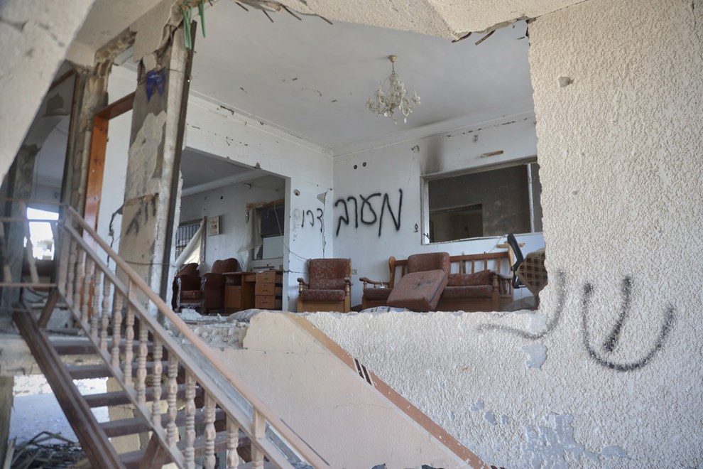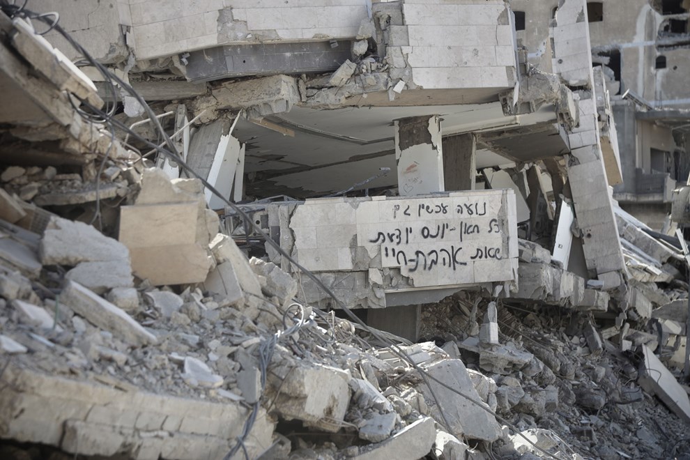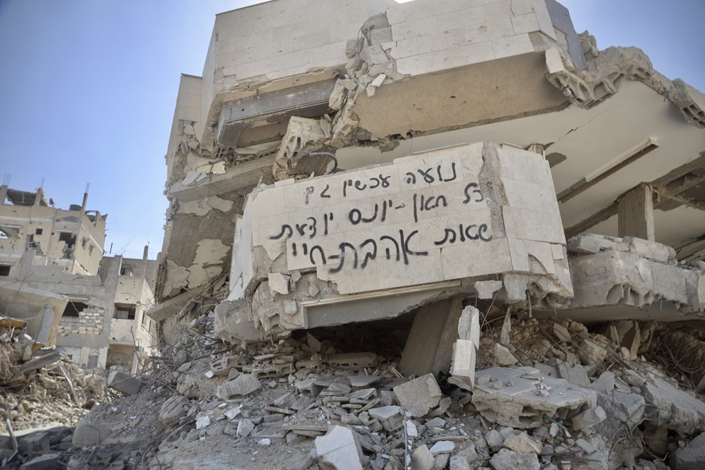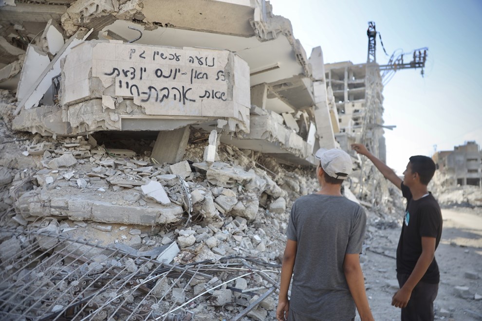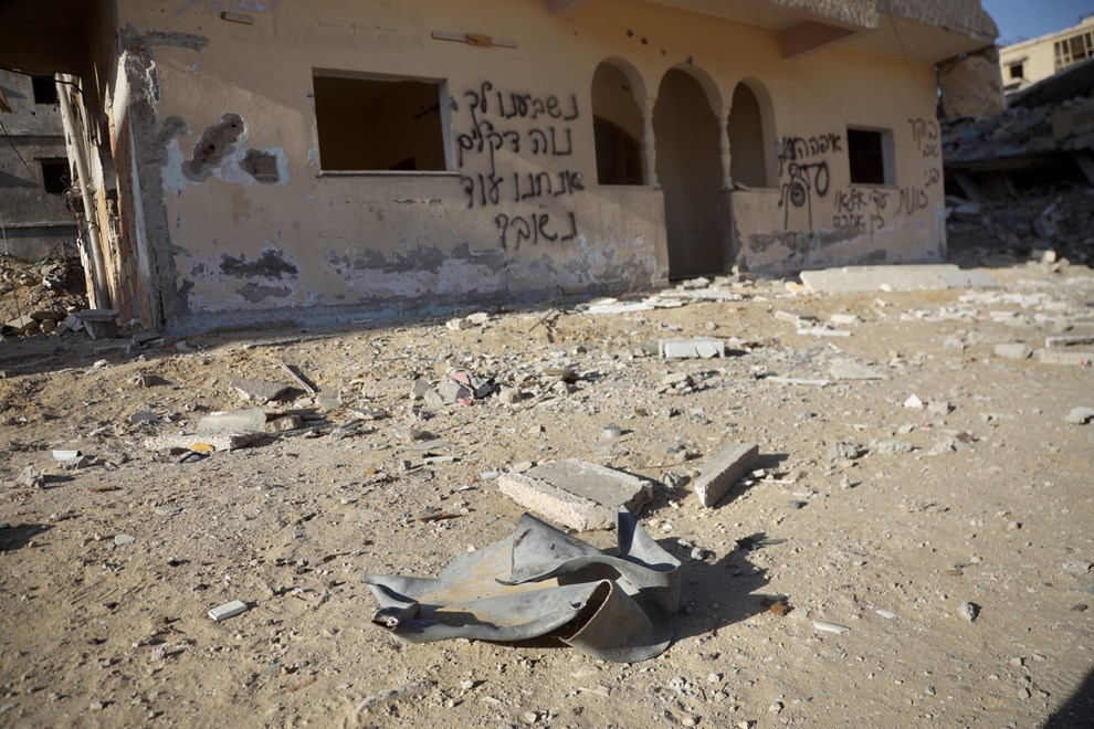 Palestince koji se vraćaju u Kan Junis dočekale su scene razaranja i izraelski grafiti na zidovima. Na nekim od grafita piše "Živio Izrael", "Živio izraelski narod" i "Ne zaboravite ubijene".