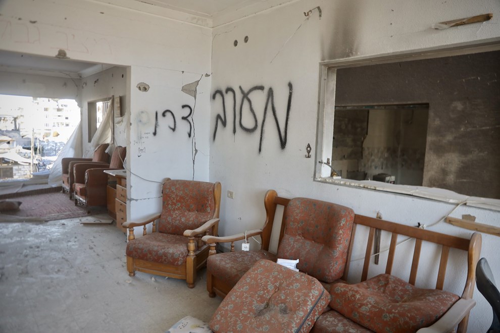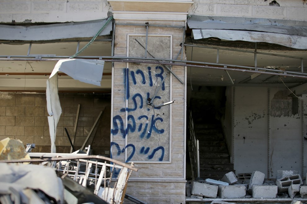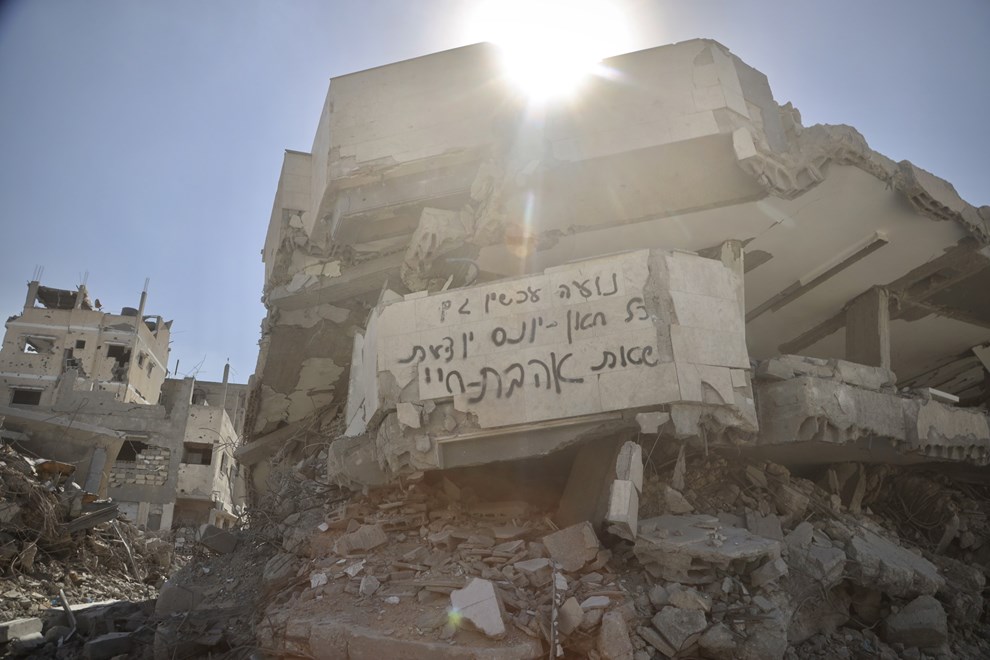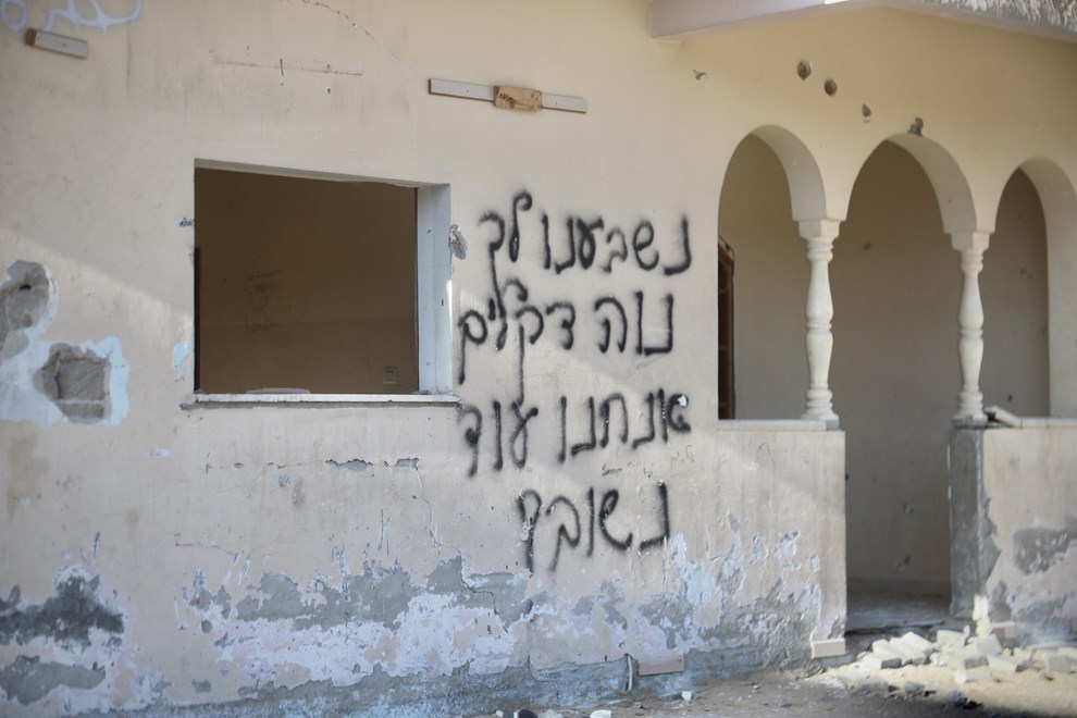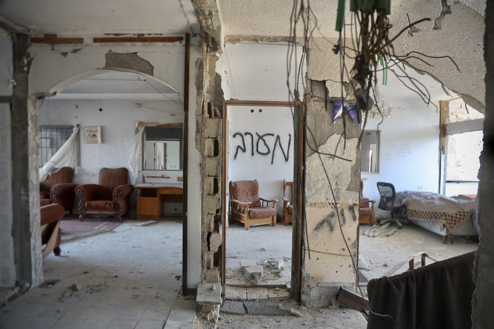 Palestince koji se vraćaju u Kan Junis dočekale su scene razaranja i izraelski grafiti na zidovima. Na nekim od grafita piše "Živio Izrael", "Živio izraelski narod" i "Ne zaboravite ubijene".