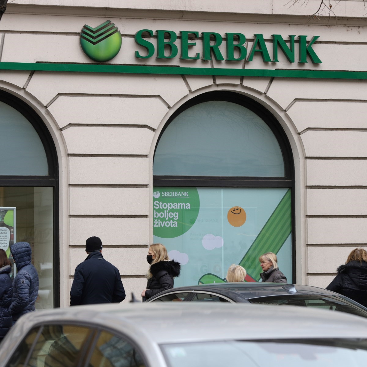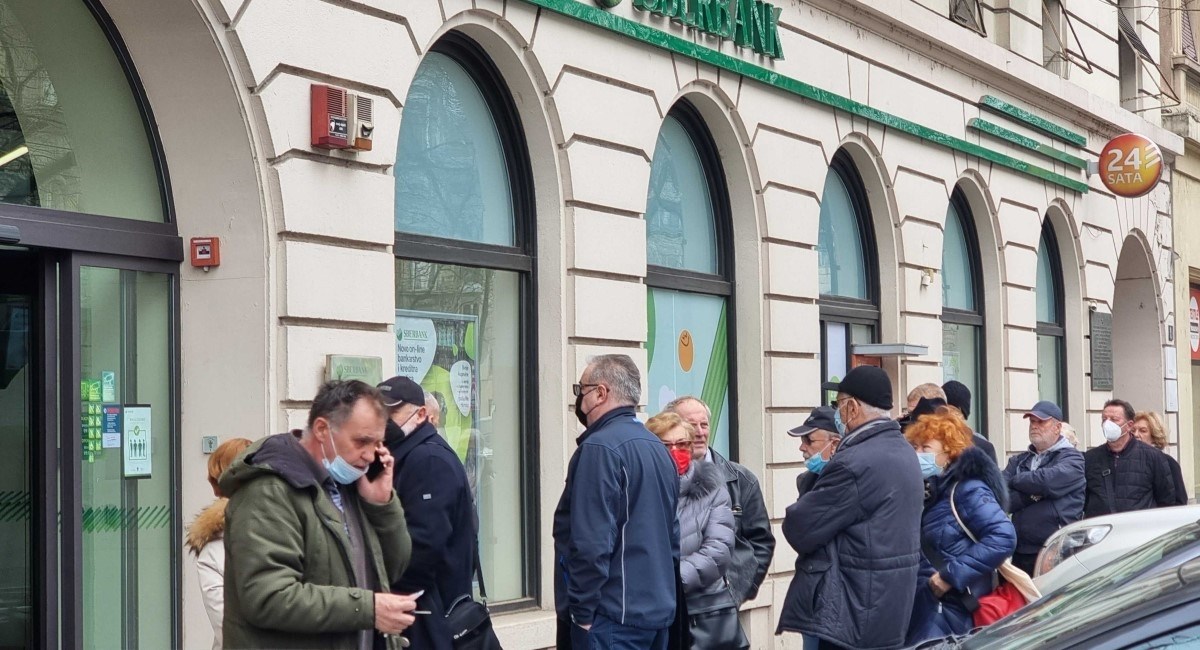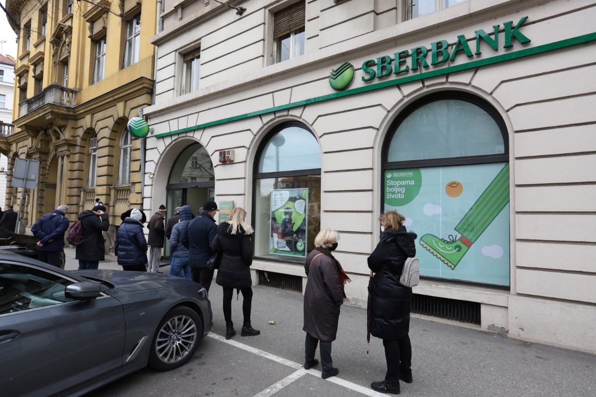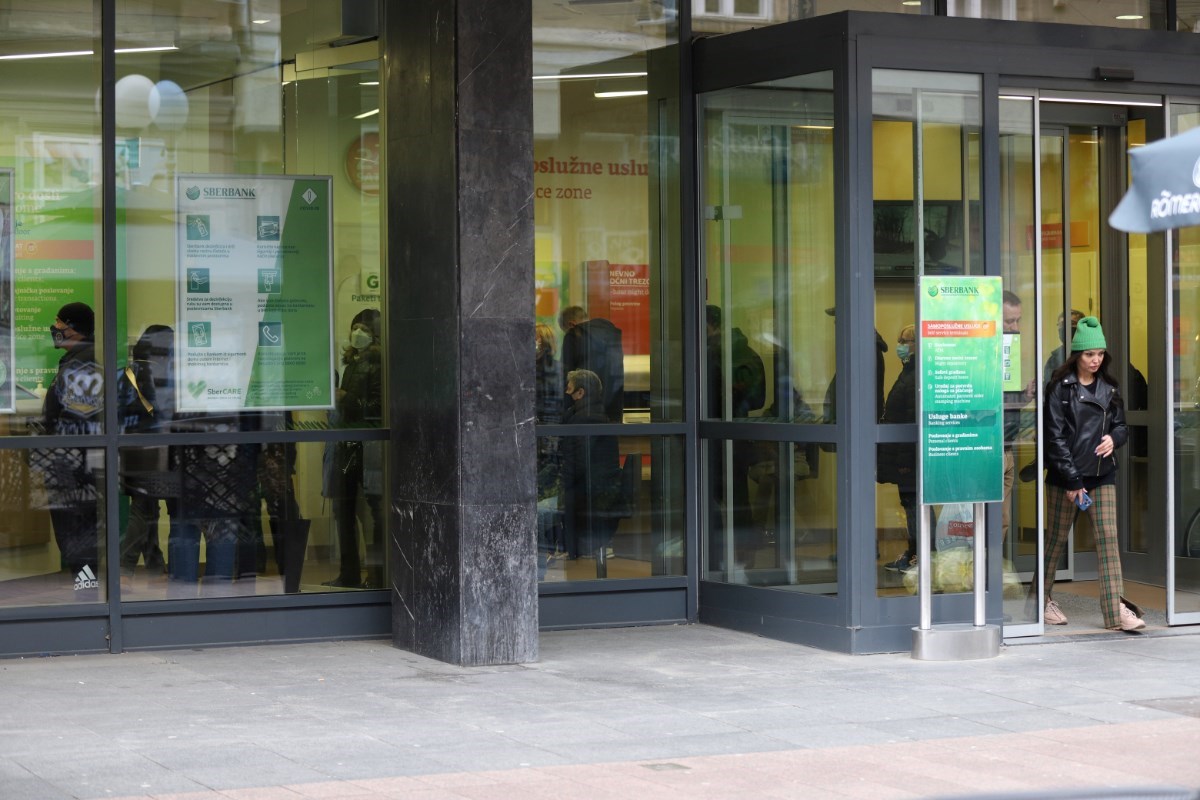 U Zagrebu se pred poslovnicom Sberbanke stvorio red, ljudi podižu novac s računa.