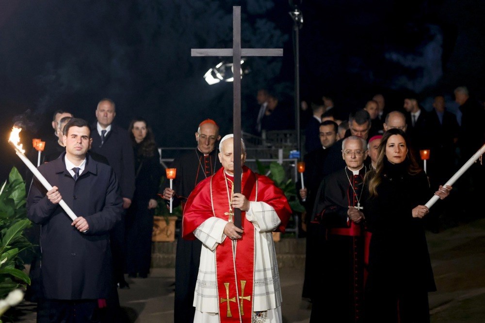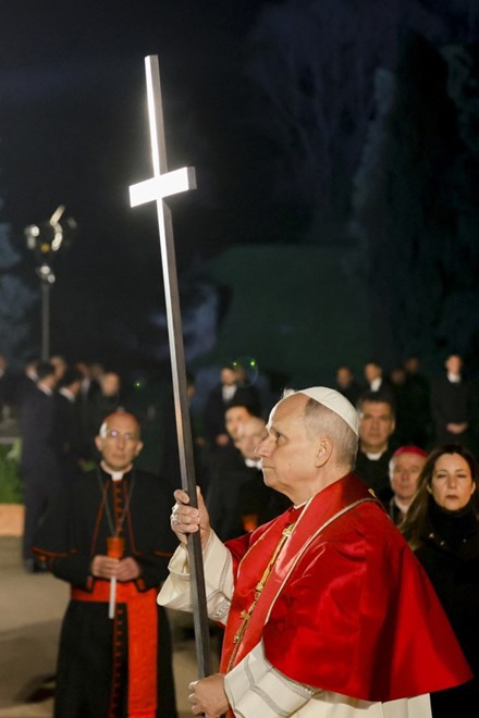 PAPA Lav XIV. poveo je na Veliki petak procesiju u Koloseju u Rimu i sam nosio križ, u nastavku vjerskih obreda u srcu Katoličke Crkve pred Uskrs nakon što je na Veliki četvrtak prvi put izveo ritual pranja nogu.