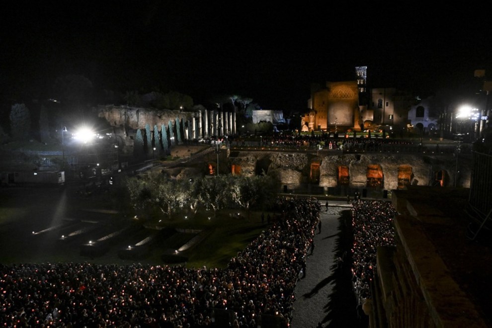 Tisuće katolika unutar Koloseja, kao i po okolnim popločenim ulicama, molile su za izbjeglice, žrtve trgovine ljudima, političke zatvorenike i "one koji su umrli pod ruševinama" tijekom ratova u svijetu.