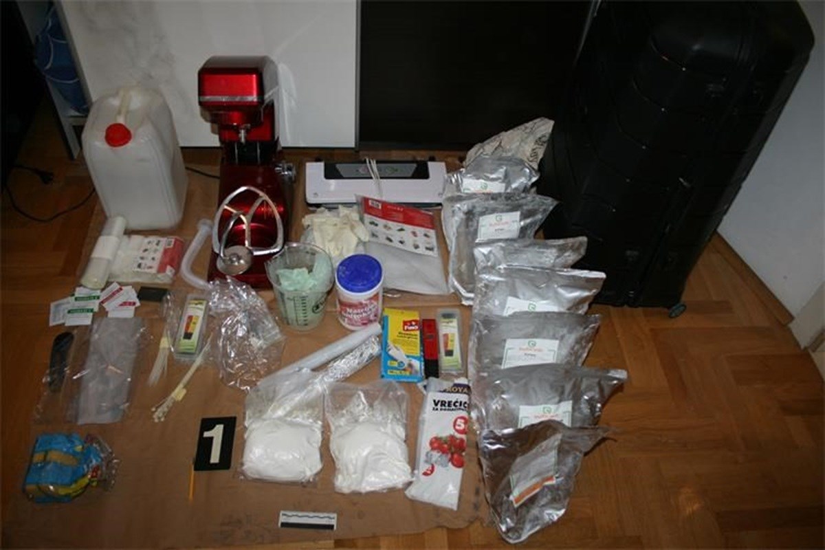 Tijekom pretrage pronađeno je 1,99 kilograma amfetamina te 477 grama paste konoplje i 1,8 grama konoplje. Pronađeno je i više aluminijskih vrećica materijala za proizvodnju amfetamina ukupne težine 12,65 kilograma, uređaji za mjerenje pH vrijednosti kao i ostali pribor koji je korišten za proizvodnju amfetamina.