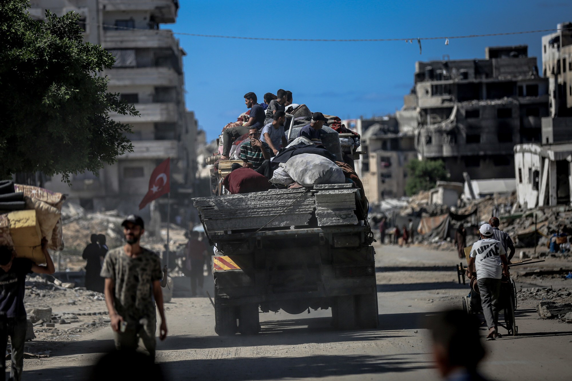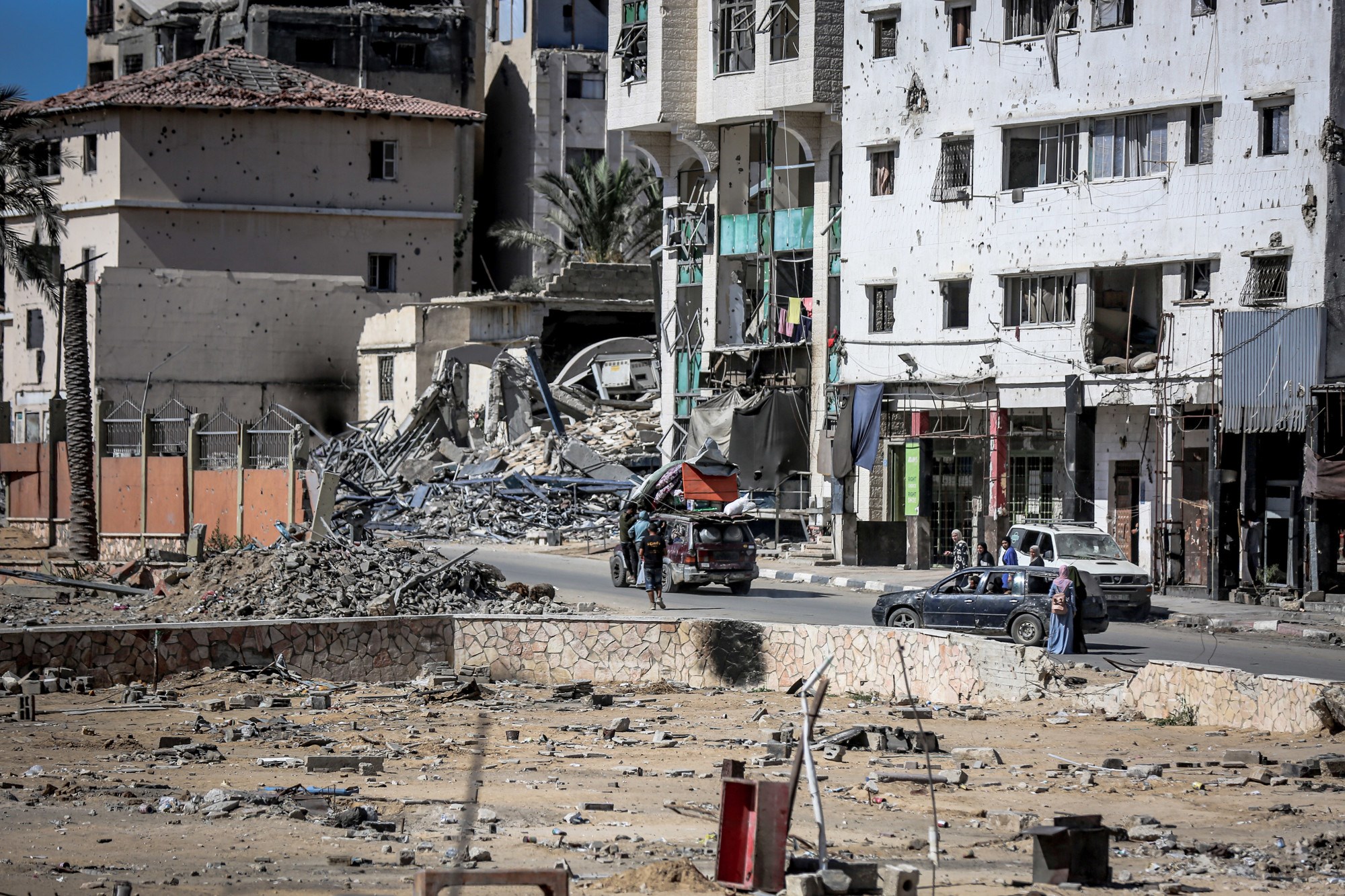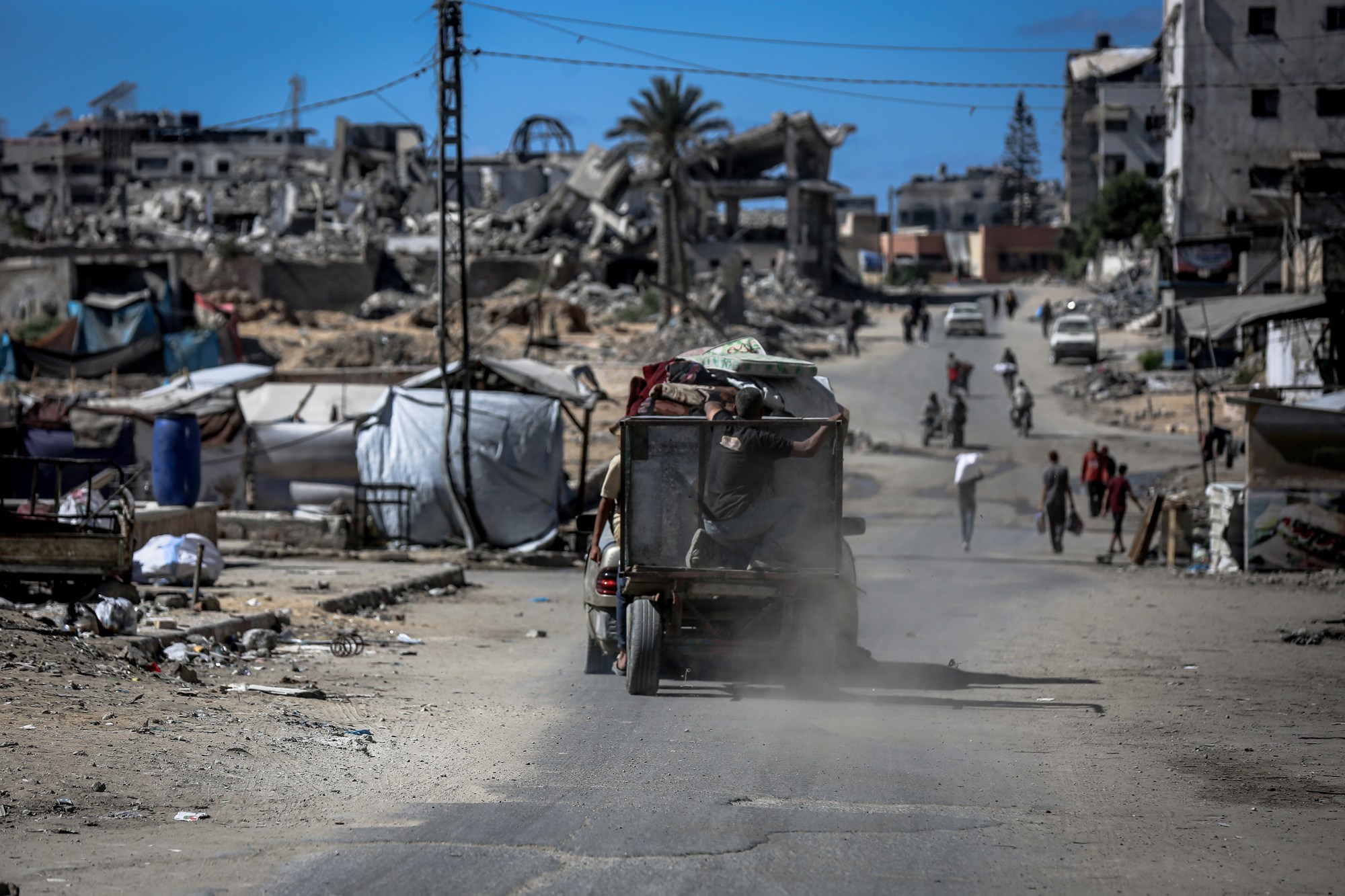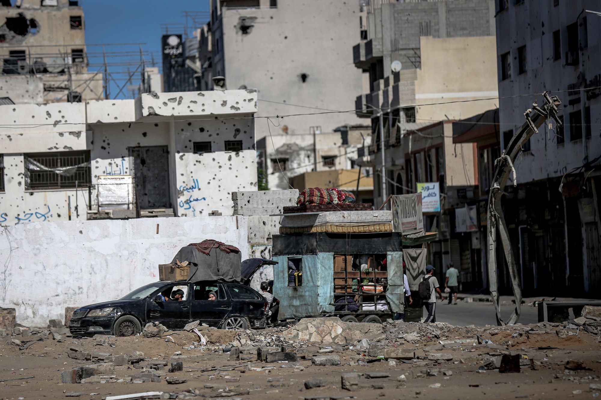 Cesta prema jugu bila je zakrčena dok su Palestinci bježali, s užurbano natovarenim kamionima i automobilima koji su vozili uz ljude na nogama, noseći svoje stvari.