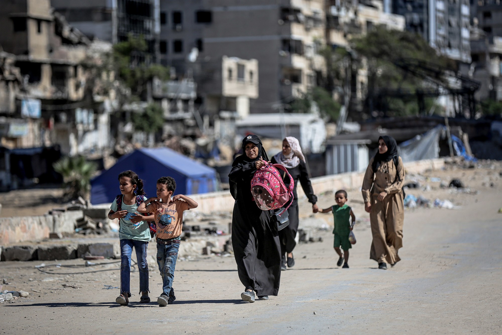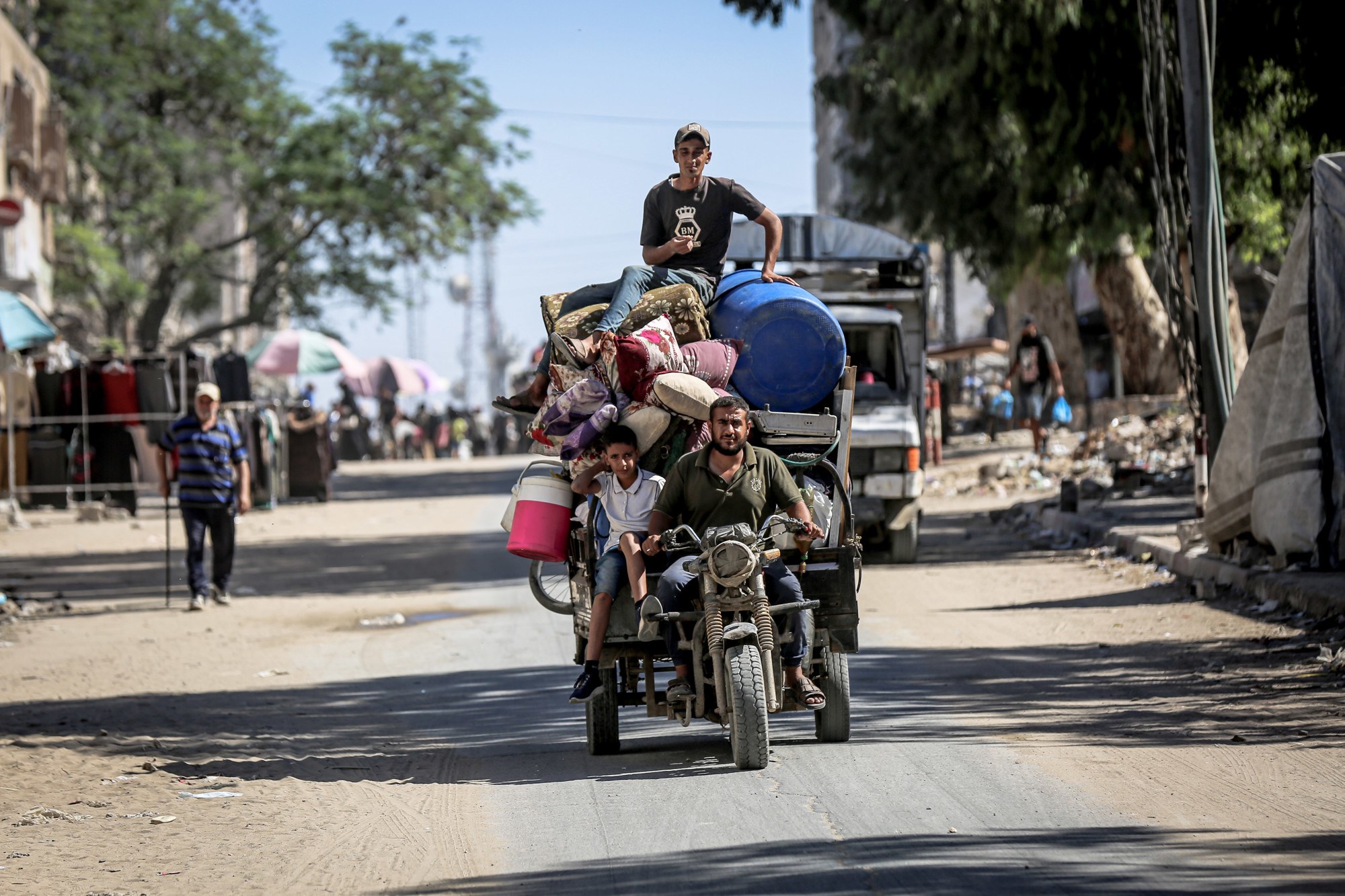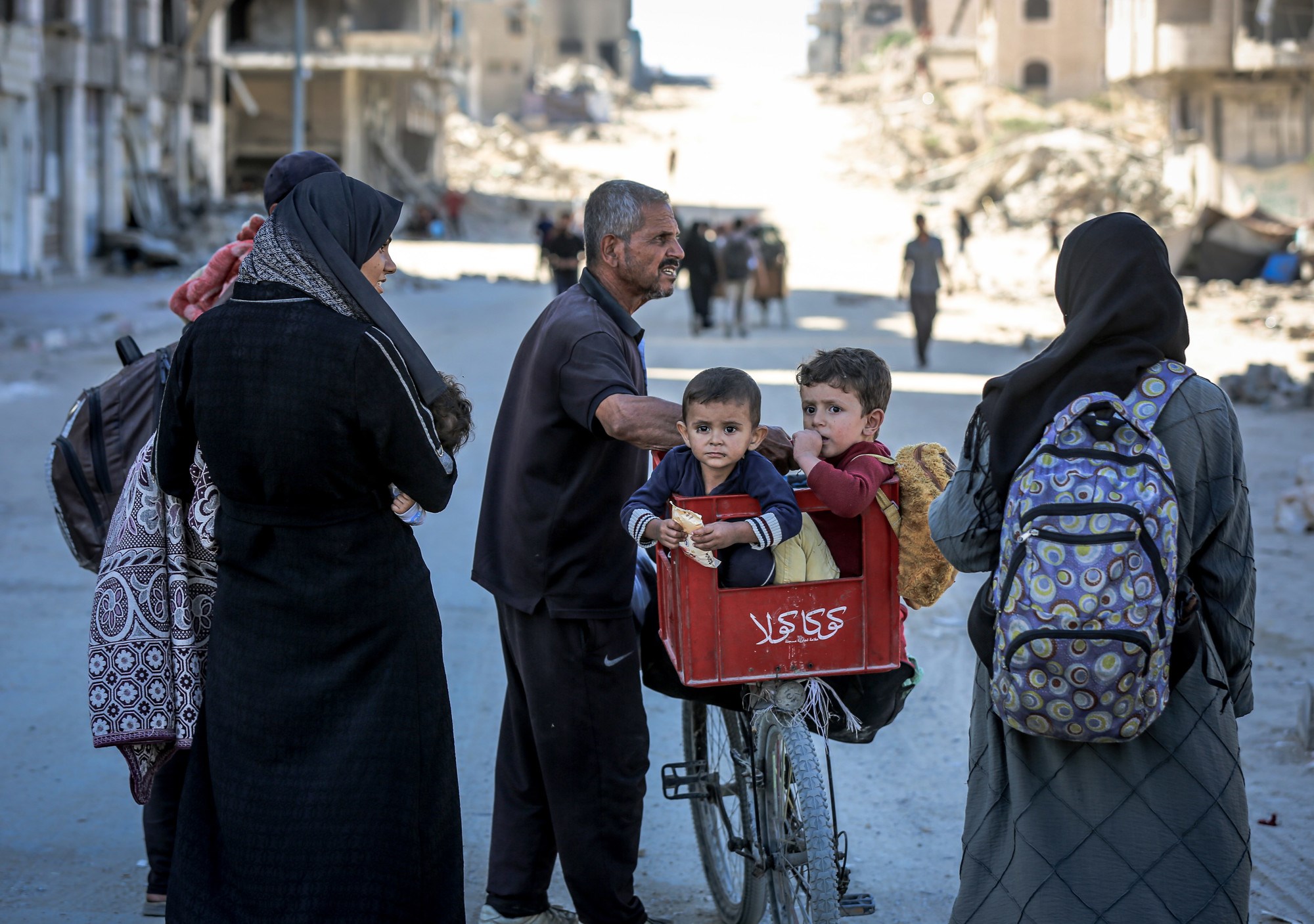 Cesta prema jugu bila je zakrčena dok su Palestinci bježali, s užurbano natovarenim kamionima i automobilima koji su vozili uz ljude na nogama, noseći svoje stvari.