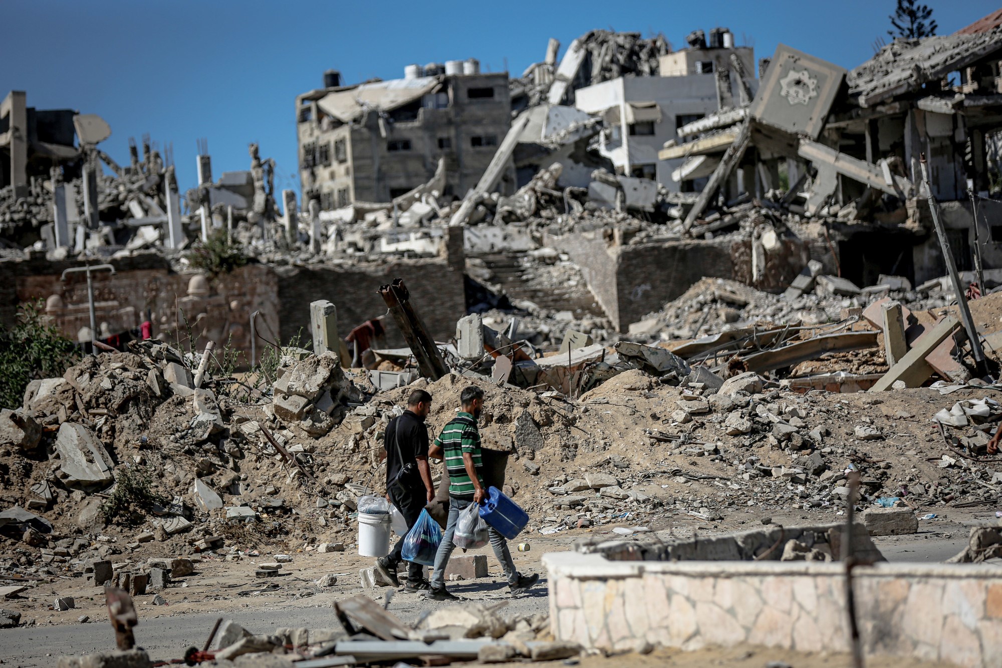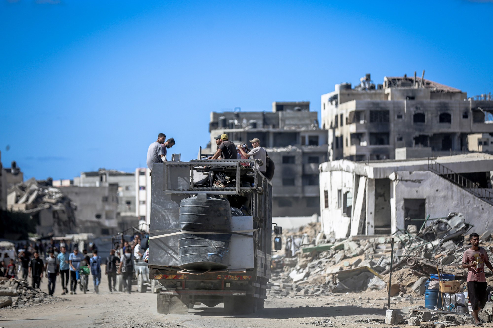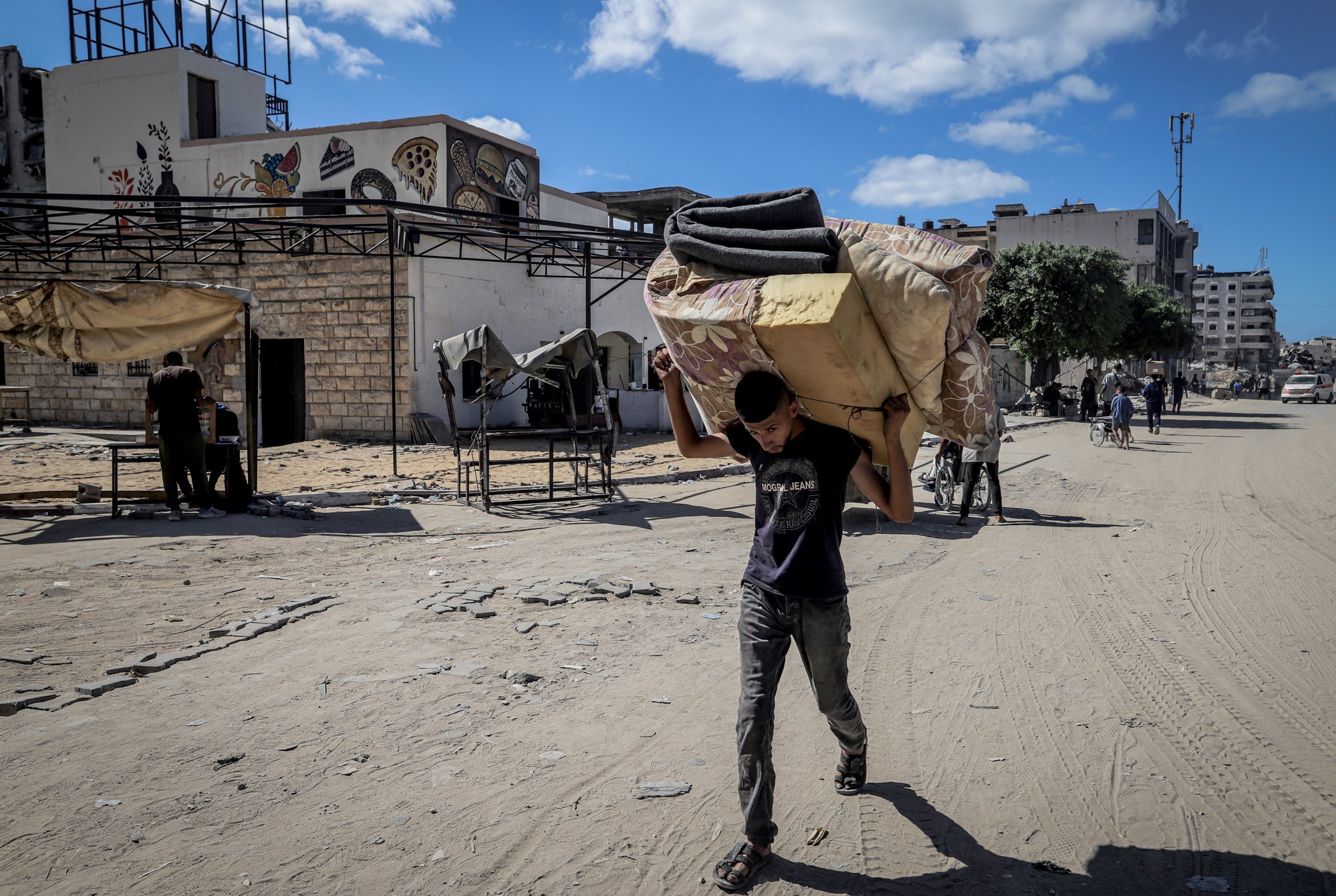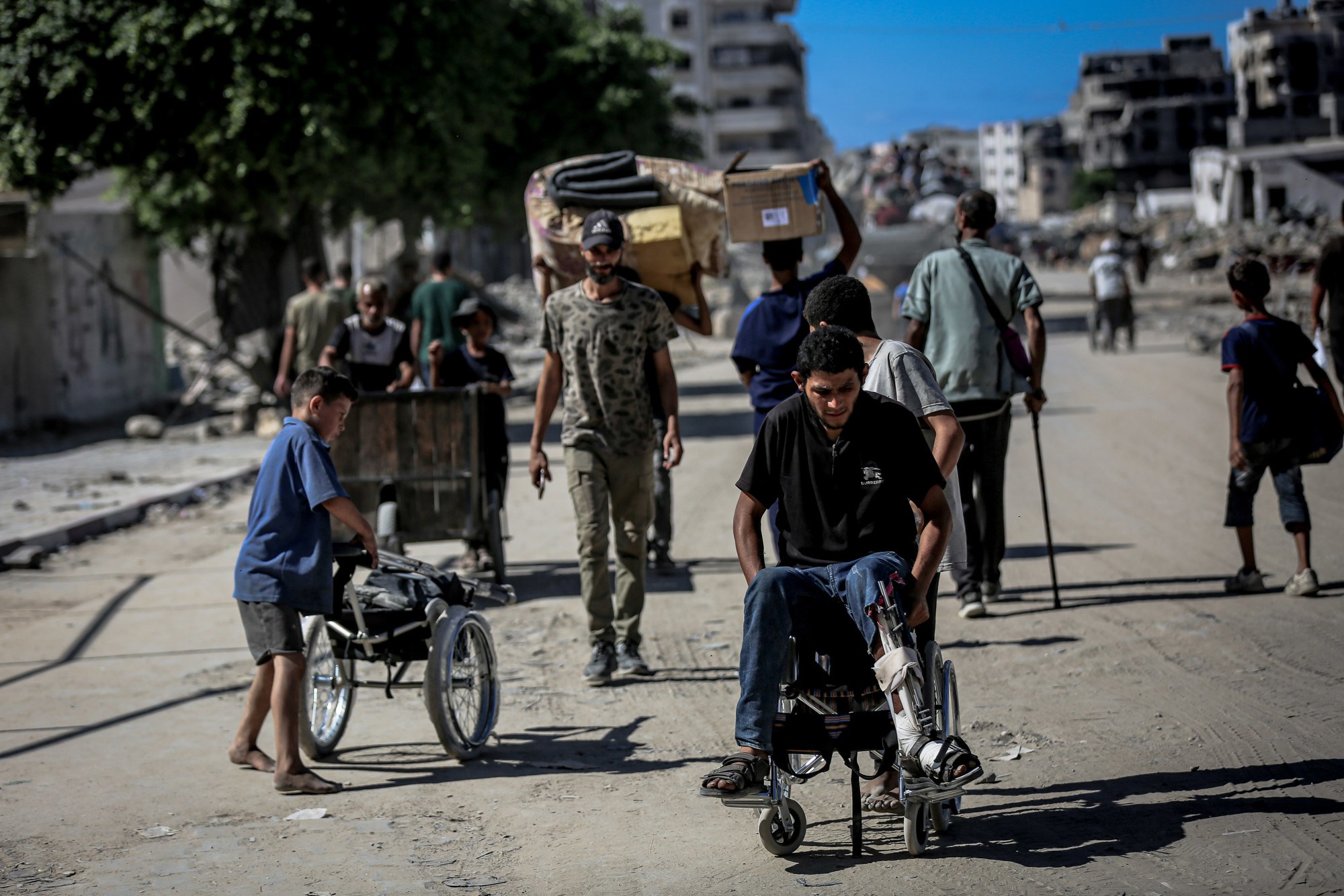 Cesta prema jugu bila je zakrčena dok su Palestinci bježali, s užurbano natovarenim kamionima i automobilima koji su vozili uz ljude na nogama, noseći svoje stvari.