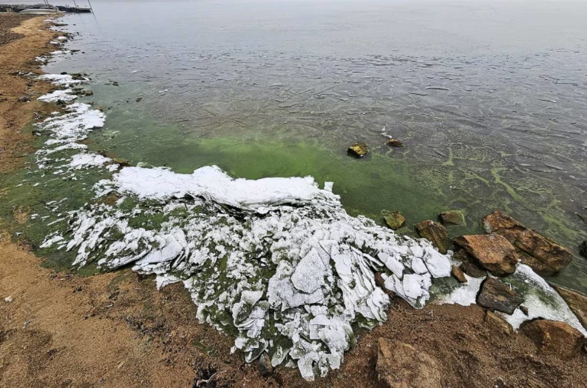 Ispod tankog i prozirnog ledenog pokrivača, nakupljene cijanobakterije stvorile su upečatljive zelene površine vidljive s obale, ali i na zračnim snimkama. Zeleni led bio je najuočljiviji tijekom privremenog zatopljenja oko Badnjaka.