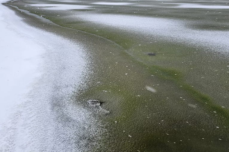 Nakon ponovnog smrzavanja, posebno su se isticale takozvane cijanobakterijske oči - mjesta s prozirnim ledom iznad tamnih nakupina bakterija. Fenomen je potrajao do kraja godine, a prestao je tek nakon obilnog snijega koji je spriječio prodor svjetlosti pod led.
