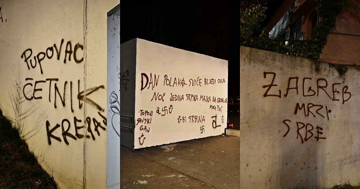 Na zidu kod ulaza u pothodnik ispisano je "Ubi Srbina" s ustaškim "u" i "potjerajte Pupovca", kao i "Pupovac, četnik, krepaj".