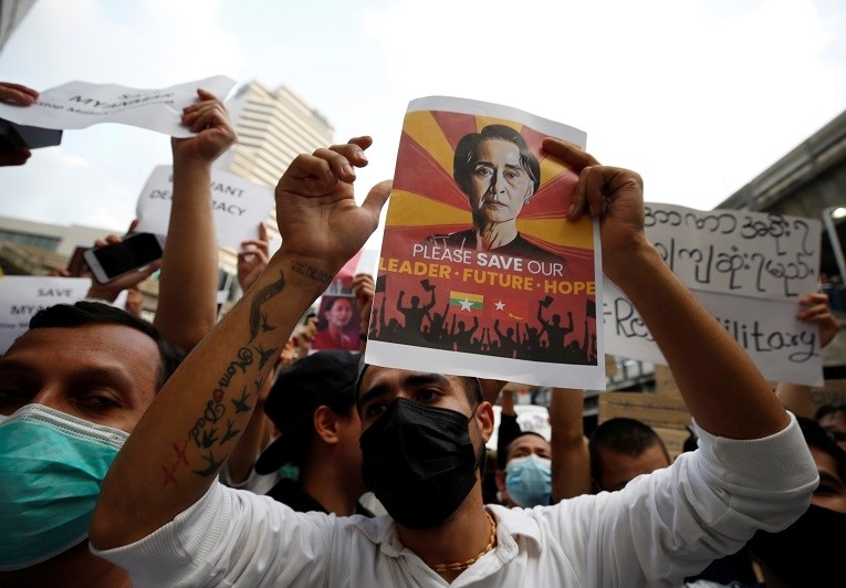 Aung San Su Kyi, dobitnica Nobelove nagrade za mir, i dalje je službeno šefica vlade, ali se nalazi u pritvoru. Žena koja je 2011. smijenila vojnu diktaturu i bila slavljena kao političarka koja donosi demokraciju nailazila je na kritike iz inozemstva prije svega zbog brutalnog odnosa prema muslimanskoj manjini u zemlji.