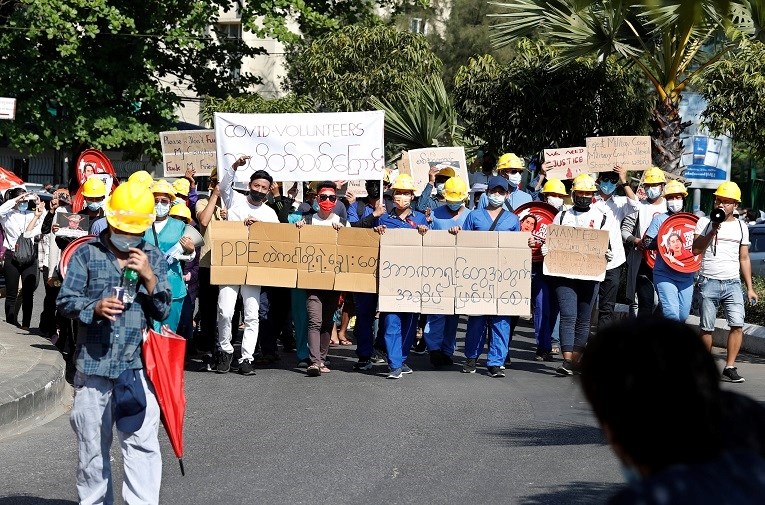 Puč i protesti događaju se dok epidemija pogađa ionako slabašni zdravstveni sustav, posebno u ruralnim predjelima. Prema službenim brojkama Mjanmar bilježi do sada preko 140 tisuća zaraženih i više od 3000 preminulih koje se dovode u vezu s koronom, što tu zemlju svrstava u srednje pogođene azijske države. Od listopada je Nacionalna liga za demokraciju, stranka svrgnute Aung San Su Kyi, proglasila strogi lockdown.