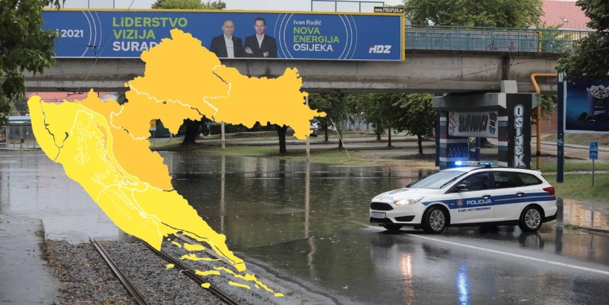 Iako je jučer objavljeno da je područje Osječko-baranjske županije dobilo crveno upozorenje za današnji dan zbog moguće lokalne obilne kiše, danas je DHMZ revidirao upozorenje, pa je tako na snazi narančasto upozorenje za osječku, zagrebačku, karlovačku i gospićku regiju.