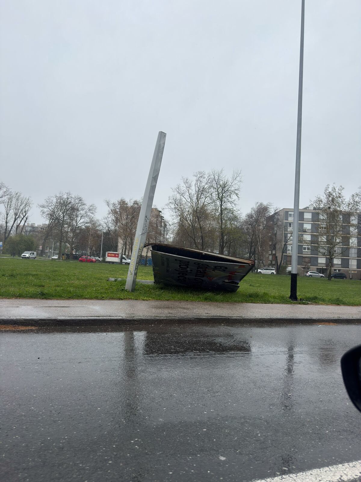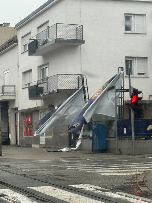 Jako nevrijeme koje je jutros zahvatilo Zagreb izazvalo je opasne situacije na ulicama, a u zapadnom dijelu grada zabilježen je incident u kojem je snažan vjetar podigao i odnio limeni dio nadstrešnice ili krova.
