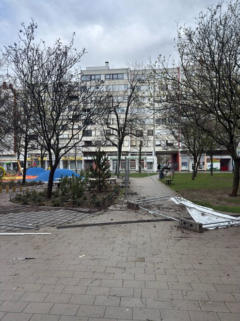 Snažan vjetar u Zagrebu uzrokovao je materijalnu štetu. Na Vrbanima se s krova zgrade odvaljuju dijelovi, a čitatelj upozorava na opasnost. Zbog nevremena je otkazana nastava u školama.