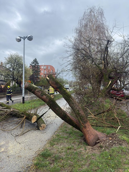 Palo je stablo na Bolničkoj cesti kod Psihijatrijske bolnice. Ne može se proći. U tijeku je raščišćavanje.