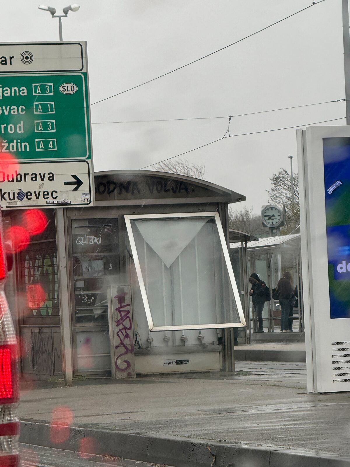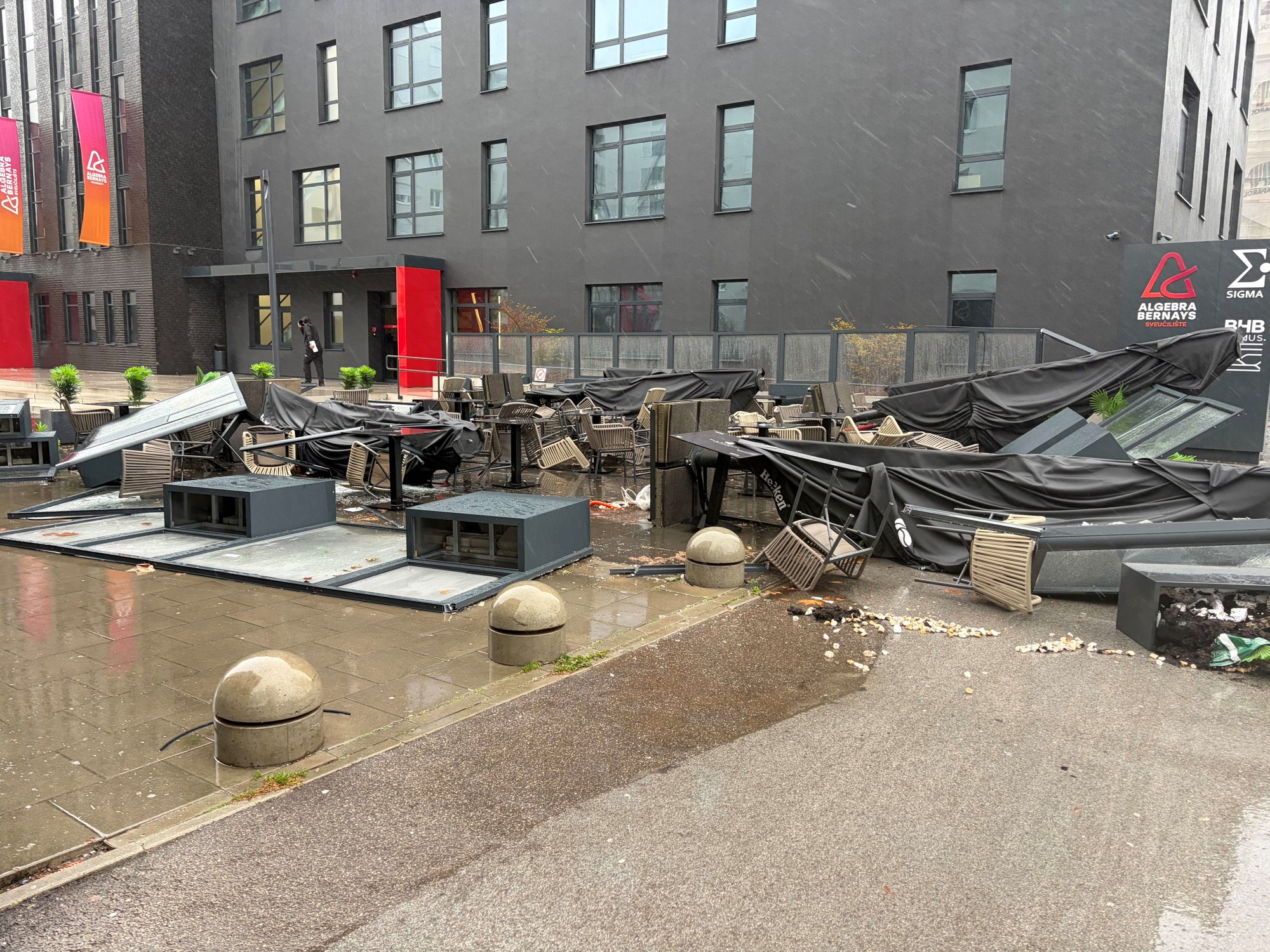 Zagreb: Vjetar jači od 100 km/h odnio je dio nadstrešnice koji je na Črnomercu zamalo pogodio pješaka, a snimka se širi.