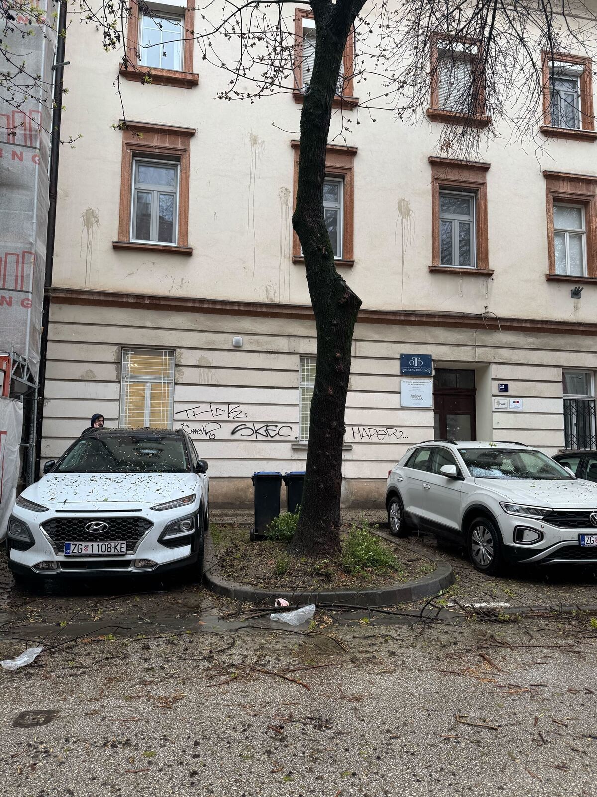 Kod Kozarčeve ulice u Zagrebu stablo se srušilo na zgradu i razbilo najmanje jedan prozor.