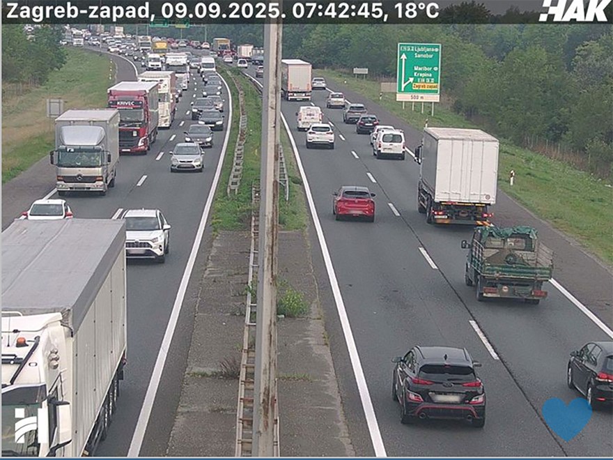 - veća je gustoća prometa na autocesti A3 između čvora Otok Svibovski i čvora Kosnica u smjeru Bregane. Promet se vodi usporeno u koloni u pokretu s povremenim zastojima po dvije prometne trake uz ograničenje brzine od 80 km/h.