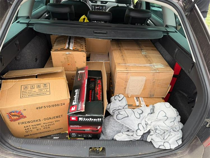 Pregledom vozila pronašli su 577 komada pirotehničkih sredstava F4 kategorije i 1000 komada pirotehničkih sredstava P1 kategorije čija je ukupna količina teža od dva kilograma. Dodatno, pronašli su i 108 grama konoplje i 14,28 grama hašiša.