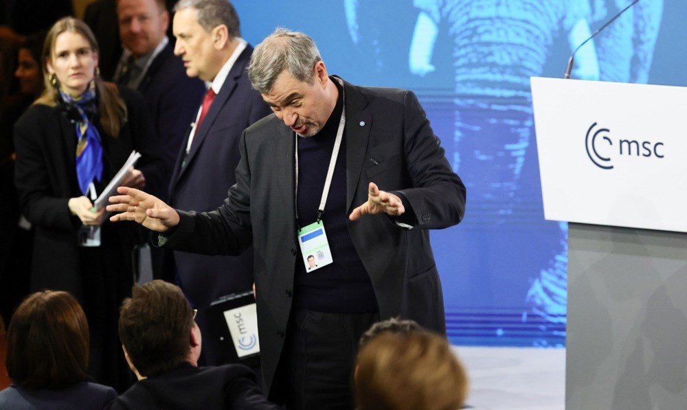U kratkoj izjavi za medije, stojeći uz bavarskog premijera Markusa Södera, predsjednika Münchenske sigurnosne konferencije Wolfganga Ischingera i poljskog premijera Donalda Tuska, zahvalio je Njemačkoj na kontinuiranoj potpori, istaknuvši da je ta zemlja sada najveći donator.