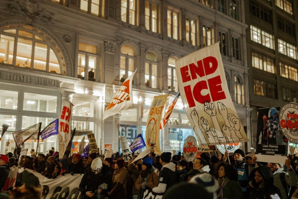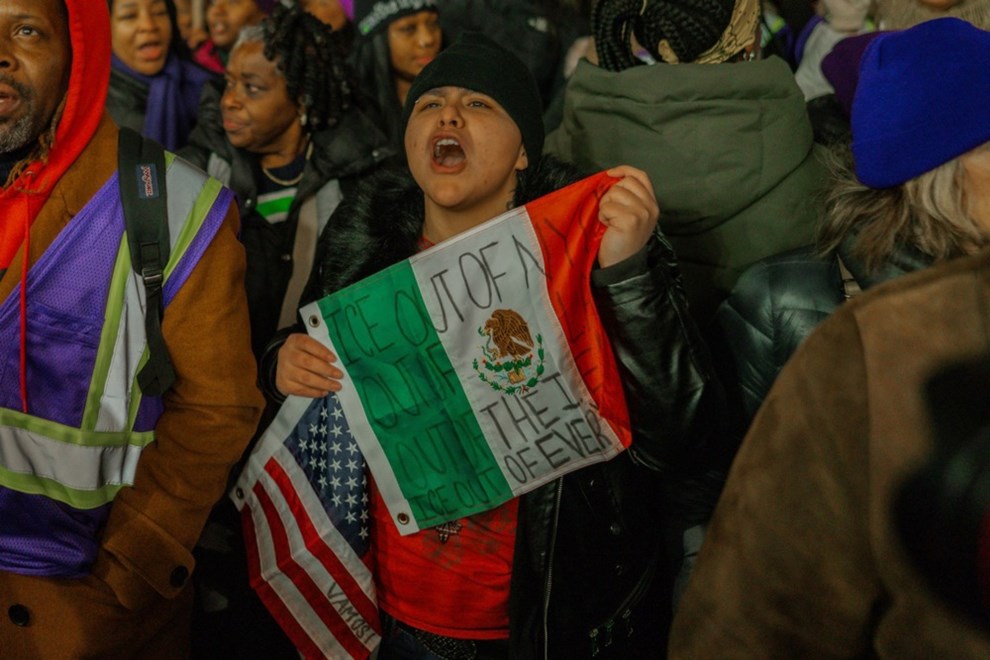 U New Yorku su se tisuće ljudi okupile na Union Squareu, a snimke prikazuju prosvjednike kako skandiraju: "Recite jednom, recite dvaput, nećemo trpjeti ICE!" Član gradskog vijeća New Yorka iz redova Demokratske stranke Chi Ossé obratio se okupljenima i pozvao na ukidanje ICE-a.