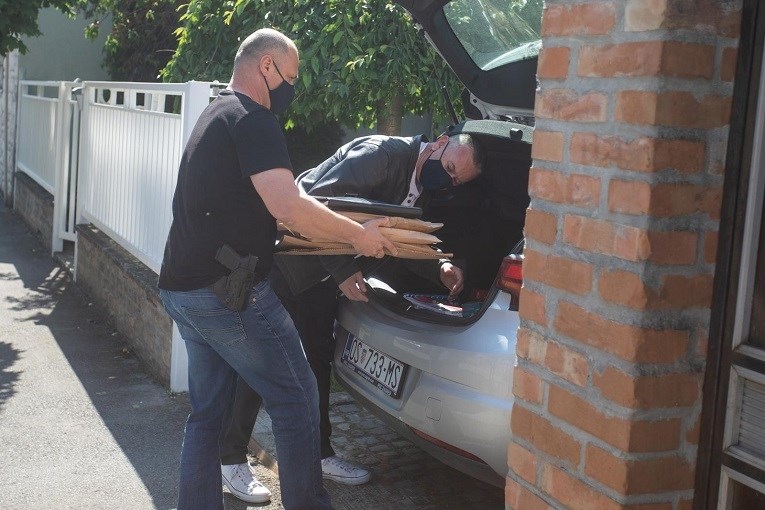 U nastavku je snimka suca Darka Krušlina koji iz svog doma odlazi s istražiteljima.