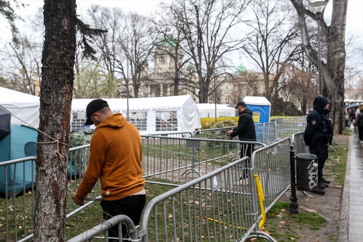 PIONIRSKI park u Beogradu, u kojemu već danima boravi grupa navodnih studenata koja tvrdi da "želi učiti", okružen je metalnim ogradama, žicom i kordonom traktora. Uoči sutrašnjeg velikog studentskog prosvjeda u kamp s pristašama srpskog predsjednika Aleksandra Vučića došla je i žandarmerija.