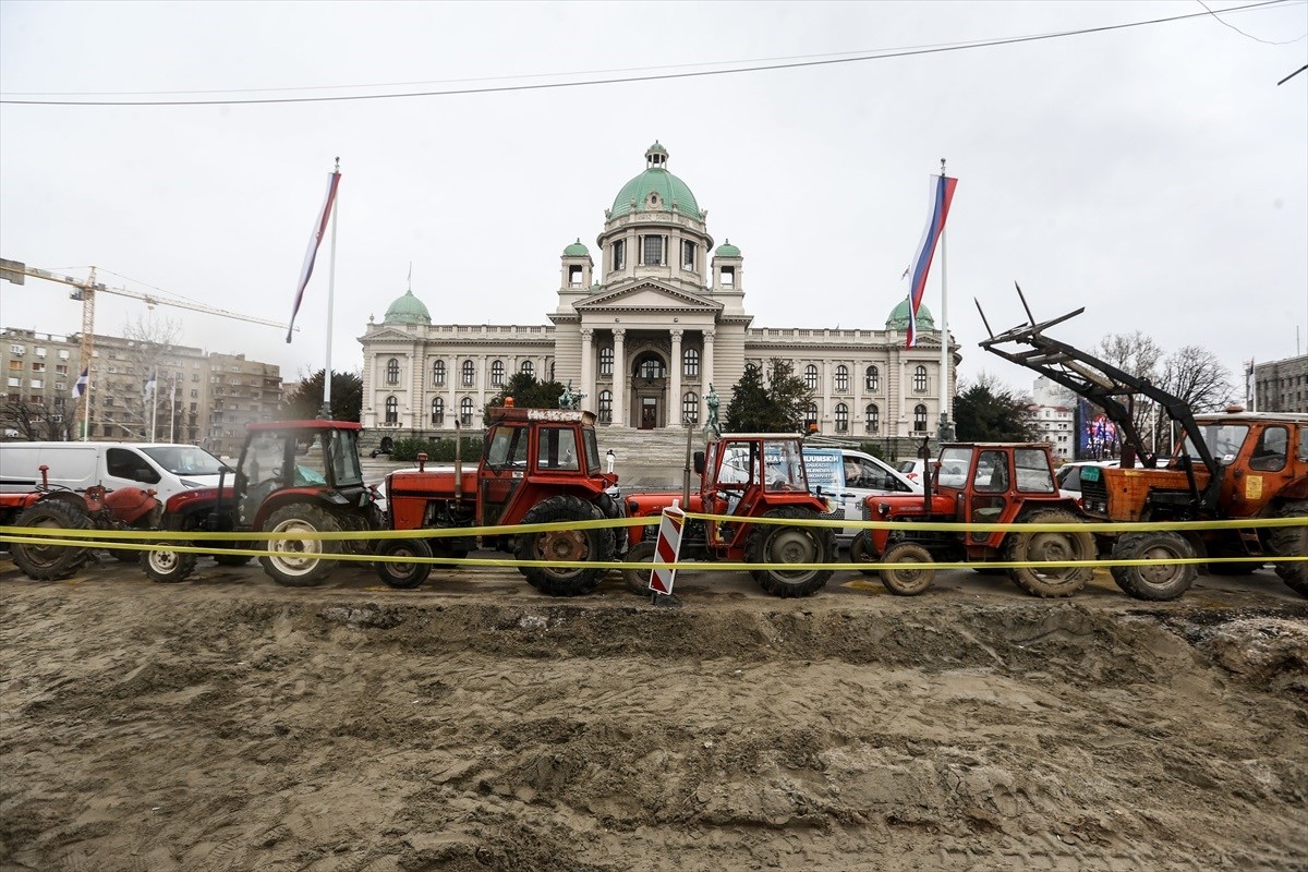 Dan uoči prosvjeda traktori su dovezeni na istaknuto mjesto - preko puta Skupštine Srbije, uz kamp Vučićevih "studenata".