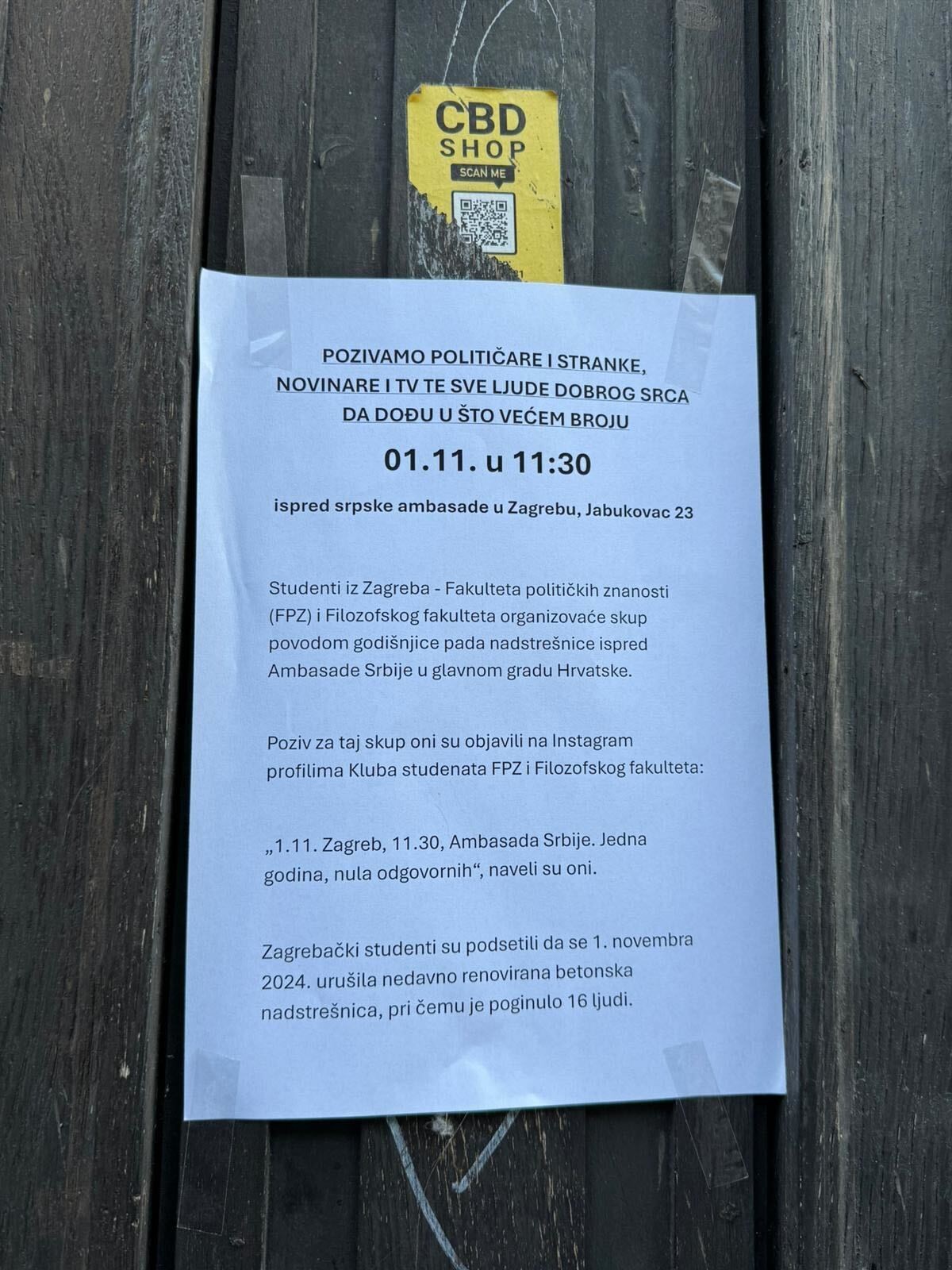 "Jedna godina, nula odgovornih", studenti u Zagrebu prosvjeduju kod srpske ambasade