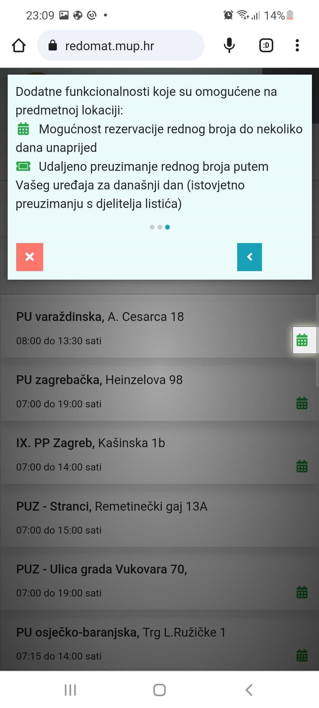 Osamnaest postaja i uprava korisnicima će ponuditi rezervaciju rednog broja kroz nekoliko dana bez opcije rezervacije rednog broja za tekući dan. U Policijskoj postaji Rovinj-Rovigno korisnici ne mogu koristiti redomat kako bi rezervirali broj, već samo mogu provjeriti stanje broja koji su uzeli na aparatu u policiji.